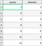 Plus gros-dominant 'PG', 'PLUS_GROS', 'COARSER', 'SUB_COARSER', 'SUB_PG' et 'DM', 'DOMINANT', 'DOM', 'SUB_DOM' 2 Nombre entier